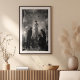 Dieses atemberaubende Schwarz-Weiß-Foto zeichnet die dramatische Intensität und die leise Ehrfurcht einer Haute-Couture-Anpassung auf. Ein Modell, erhöht auf einem Sockel wie eine lebendige Skulptur, wird in einem Himmelsglühen gebadet, ihr elegantes gown ein Leuchtfeuer des Lichts gegen die Schatten. Um sie herum arbeitet ein Team von engagierten Designern mit fokussierter Präzision, deren Silhouetten ein Beleg für die gemeinschaftliche Kunst der Schöpfung sind. Der prachtvolle Salon mit seinen prächtigen Kristallkronleuchtern und großen Spiegeln bietet einen atemberaubenden Rahmen. Der meisterhafte Gebrauch von kontraststarker Beleuchtung schafft eine leistungsstarke, kinematische Qualität und verwandelt einen Augenblick hinter den Kulissen in ein Werk zeitloser Kunst. Ideal für Kenner der klassischen Fotografie, Modegeschichte und dramatischen, erzählergetriebenen Bildsprache.