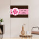 © 2014 Sozialite Designs. Elegantes Poster-Design mit einem Kuchen mit rosa Vereisung in einem runden Spitzen-Design. Ihr Text wird in ein rosa-weiße Banner mit einem schräggestellten Spitzen-Look Rand eingebettet. Ein rosa Band verleiht dem Design eine Touch Eleganz. Der Hintergrund hat ein braunes Damast-Muster.