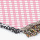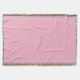 A pink woven blanket with a subtle pattern is shown in two orientations. It features fringed edges, conveying a cozy and warm feel.