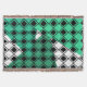 Cette trois couvertures a un design moderne du milieu du siècle de diamants noirs solides à l'intérieur des contours en losange noir avec des triangles dans les nuances de vert de mer sous eux, le tout sur un champ de blanc.