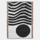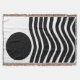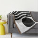 Cette couverture de lancer a Bauhaus design de lignes ondulées et cercles en noir sur un champ de blanc.