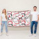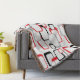 Un design rétro cool inspiré des carrés rouges, noirs et gris contre un arrière - plan blanc sur une couverture confortable jetable.