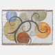Design géométrique d'inspiration boho avec cercles vert, beige, bleu et orange, textures uniques et recouvrements floraux.
