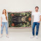 Chat noir et fleurs rouges style Art nouveau, William Morris inspiré art.