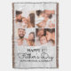 Bonne première Fête des pères ! Si vous avez besoin de l'article photo collage parfait pour souhaiter à un nouveau père une première Fête des pères heureuse, alors customisez cet article avec vos propres photos de papa et bébé. Derrière les photos se trouve un arrière - plan de bois rustique blanc.