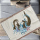 Une jolie loutre brune jouant dans l'eau avec des fleurs dans un fond crème