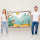 This adorable 🦁 Cute Jungle Animal Kids Blanket features a playful tiger, colorful birds 🐦, butterflies 🦋, mountains, sunshine ☀️ and tropical forest scenery.
