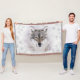 Une belle peinture de la tête d'un loup, avec la neige là-dessus, est le point focal sur cette couverture belle de jet. Les graphiques des flocons de neige entourent les bords extérieurs de la couverture pour encadrer le loup. Customisez pour ajouter votre propre texte à cette belle couverture.