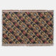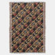 Cette couverture contemporaine de jet comporte un motif abstrait de répétition d'une bouteille rouge et noire droite de vin de Bourgogne à côté de trois bouteilles supplémentaires dans un brun, un or et un support en bois jaune de vin. Un arrière - plan orange rustique de mur de briques accomplit la composition.