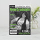 Les invitations à des diplômes qui ressemblent à la couverture d'un magazine. Personnalisez avec la photo du diplômé, l'information de l'école et les détails de la fête. Pour obtenir de meilleurs résultats, utilisez une photo haute résolution affichant la moitié supérieure du diplômé. Des photographies en noir et blanc ou en couleur peuvent être utilisées.
