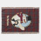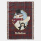 Offrez à votre maison une atmosphère de vacances chaleureuse avec cette couverture festive colorée faite dans le traditionnel écossais rouge, vert, bleu, jaune clan écossais MacClure tartan plaid motif. Des graphiques de style champêtre d'un bonhomme de neige et de manchot, en forme ovale, décorent le milieu de la couverture. Personnalisez le texte pour lire ce que vous voulez.