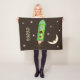 La couverture mignonne d'ouatine avec deux chiens et un chat dans une fusée verte embarquent le vol sous le croissant de lune de sourire. Arrière - plan de brun foncé. Personnalisez avec le nom de votre enfant.