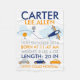 Bleu marine, orange, rouge, ballon à air chaud, voiture, transport, couverture de bébé de faire-part de naissance d'avion