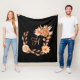 Couverture en molleton fleuri noir et pêche avec m