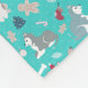 Couverture bleu-clair intéressante de Noël avec les chiens et le motif enroués mignons d'éléments de célébration.
