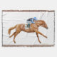 La conception originale de beaux-arts d'un cheval de course de pur sang et le jockey par l'artiste équin Carolyn McFann du studio de ronronnement de deux chats imprimé sur une qualité jettent la couverture pour la course de chevaux et d'autres fans de cheval de sport équestre.