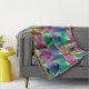 Le motif d'origine de cette couverture à Throw a été réalisé à partir de photographies originales de ZoeSPEAK de feuilles de bananes sur un arbre dans le jardin. Les photos sont closeups, montrant les motifs des feuilles en ruban qui se courbent l'un autour de l'autre à la lumière du soleil. Les photos ont été teintées avec une variété de couleurs muettes, vertes, bleus, bruns et violets. Les coutures où se rencontrent les photos ont des bords légèrement ondulés, comme s'ils étaient cousus ensemble comme une courtepointe.