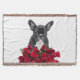 Français Bulldog Chiot Rose Fleurs Jeter arrière - plan Blanc. Un cadeau parfait pour quelqu'un que vous aimez.