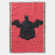 Illustration de Batman debout devant l'horizon de Gotham City en forme d'aile de chauve-souris.