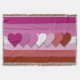 Throw blanket with an image of hearts in the colors of the lipstick lesbian pride flag, on a background with the lipstick lesbian pride flag.