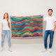 Cette conception abstraite mêle la fluidité des vagues océaniques à la beauté complexe de l'art de la mosaïque. Elle présente un éventail fascinant d'ondes colorées et tessellées qui s'écoulent. Chaque vague est composée de petites formes géométriques, créant une texture unique qui invitation un examen plus attentif. La palette de couleurs éclatante s'étend des aquas cool aux bleus profonds en passant par les rouges chauds, les oranges et les jaunes, avec des éclats de rose et de violet ajoutant profondeur et contraste.