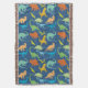 Motif de silhouette de dinosaure. Tyrannosaurus Rex, titanosaures, Tricératop, raptors, Ankylosaures, Dino-Birds, Stegosaurus, Apatosaurus, Pteranodon et plus dans un motif coloré en arrière - plan bleu, et dinosaures en vert, bleu, jaune et orange.