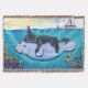 "Water Babies" illustre la nature du chien d'eau portugais et sa facilité avec la mer. Ce chiot prend un tour coloré sur un manat amical. Encres et crayons colorés. c)2014 Andie.