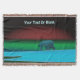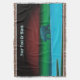 Un ours polaire arpente la glace pendant la longue nuit polaire; les aurores boréales en rouge et vert au loin. Ajoutez votre propre texte.