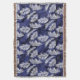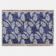 Feuilles de palmiers blancs sur un arrière - plan bleu indigo, recouverts de frondes de palmiers plus bleues.