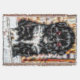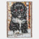 Un chien mignon vous regardant avec ses yeux rouge vif debout sur un rail le chiot un Pekingese noir et blanc puppy appelé peter