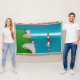 Illustration du phare de Beachy Head, vue depuis le sommet de la falaise de la tête de Beachy. Un design coloré avec le phare reflétant dans les eaux calmes de la Manche.