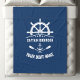 Voitures d'Ancres nautiques - Helm With Personnalized Captain & Boat Name sur une élégante couverture en polaire bleu marine personnalisable.