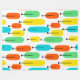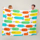 Cette grande couverture en toison a un design moderne du milieu du siècle de longs ovales en jaune, orange, vert et turquoise avec des lignes noires avec des cercles sur les extrémités.