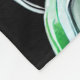 Un ami en fureur derrière les guidons d'une moto verte brillante, portant une tenue verte de la Saint Patrick qui fait tourner la tête. Le chien est habillé d'un ensemble festif, avec une cravate arc-en-ciel verte et un chapeau haut assorti qui se trouve doucement au-dessus de la tête. Le costume présente des motifs complexes de shamrocks et de leprechauns, ce qui indique clairement que ce chien est prêt à célébrer la Saint Patrick avec style.