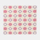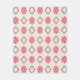 This blanket has a playful geometric floral pattern featuring pink daisy motifs and purple diamond shapes arranged in a seamless, cheerful repeat on a soft cream background.”