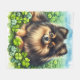 Un adorable chien brindle de Poméranie posant un champ de trèfle avec quelques shamrocks. Un joli cadeau de la Saint Patrick pour les propriétaires et amateurs de pom de Poméranie.