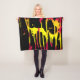personnages humains et animaux s'animent dans un abstrait coloré