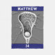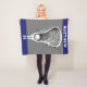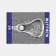 Décor de crosse personnalisé pour joueur ou entraîneur avec design bâton et balle sur arrière - plan d'équipe bleu. Pour customiser de modifier du texte pour ajouter le nom et le numéro d'équipe du joueur laxiste.