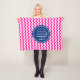 Pink and white geometric chevron retro pattern with monogram and blue color accent.