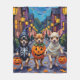 L'adorable Chihuahuas habillé de costumes d'Halloween ludiques porte des seaux citrouilles tout en trompant ou en traitant sous le ciel illuminé par la lune. Ce design festif met en valeur la taille minuscule de la race, sa grande personnalité et son esprit animé, capturant à merveille l’atmosphère éffrayante et ludique de la nuit d’Halloween. Une charmante fête pour les amoureux de les chiens comme pour les fans d'Halloween.