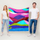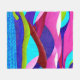 Paysage abstrait coloré de collines et d'un océan aux couleurs rose, violet, bleu, vert et cyan.