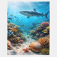 Into the deep blue from the comfort of your couch with this stunning high definition underwater fleece blanket this large 152.4 X203.2 cent blanket features a majestic shark gliding gracefully over a bustling coral reef filled with colourful sea life shells and starfish designed for ultimate clarity and detail. The print utilises a massive 8192 x 8192 pixel high resolution image ensuring every coral texture and bubble is rendered with professional grade sharpness made from soft cozy fleece. This blanket is perfect for Ocean lovers, marine biology enthusiasts or adding a serene aquatic focal point to any bedroom or living space