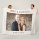 Grande couverture avec votre photo mariage / fiançailles, les noms, et la date sur un arrière - plan crème. Contactez-nous pour obtenir de l'aide sur la personnalisation ou la mise en correspondance de produits.