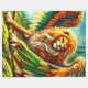 Cette couverture en toison a une créature de lion dessus.