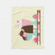 Une couverture en toison sur le thème de la crème glacée douce. Illustré avec un bar à crème glacée au chocolat, un sundae à 3 boulettes avec une cerise sur le dessus, et un flotteur à fraise avec de la crème fouettée. Petites fraises et cerises. Arrière - plan jaune pâle. Rafraîchissant, gourmandises chaudes en été.