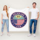 Badge du Delaware avec drapeau du Delaware et drapeau des Etats-Unis couleurs, forme arrondie. Emblème du Delaware. Sceau du Delaware. Collection USA Etats.