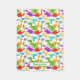 Une couverture en toison Dinosaur aux couleurs vives de vert pourpre orange et rouge Trex,, Tricératops, Brontosaurus, Dilophosaurus, Iguanadon, Pterodon et Dino oeufs sur un arrière - plan blanc. Idéal pour les enfants qui aiment les dinosaures préhistoriques. Peut être personnalisé en changeant le nom pour en faire une couverture spéciale supplémentaire.