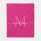 Élégant Monogramme Hot Magenta Rose Blanc moderne Script Nom Fleece Blanket