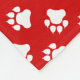Cette couverture en toison a un motif d'empreintes de pattes de chien blanc sur une couleur arrière - plan rouge.