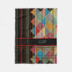 Couverture en polaire avec ma conception moderne originale de rayures sur des formes triangulaires multicolores sur le noir avec des exemples d'initiales pour vous de customiser avec les vôtres.
